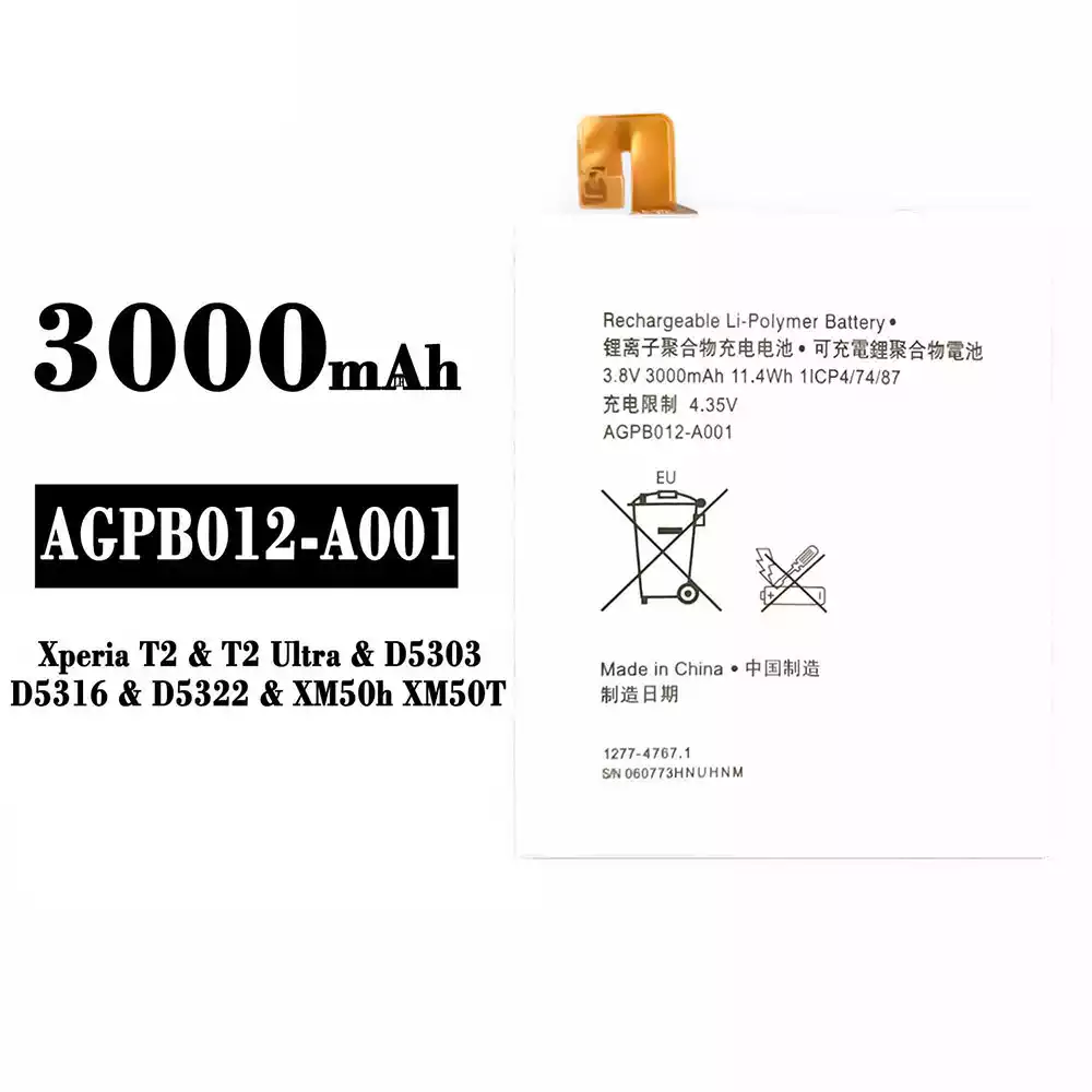 Battery model AGPB012-A001 for Sony Xperia T2 / T2 Ultra / D5303 / D5316 / D5322 / XM50h / XM50T