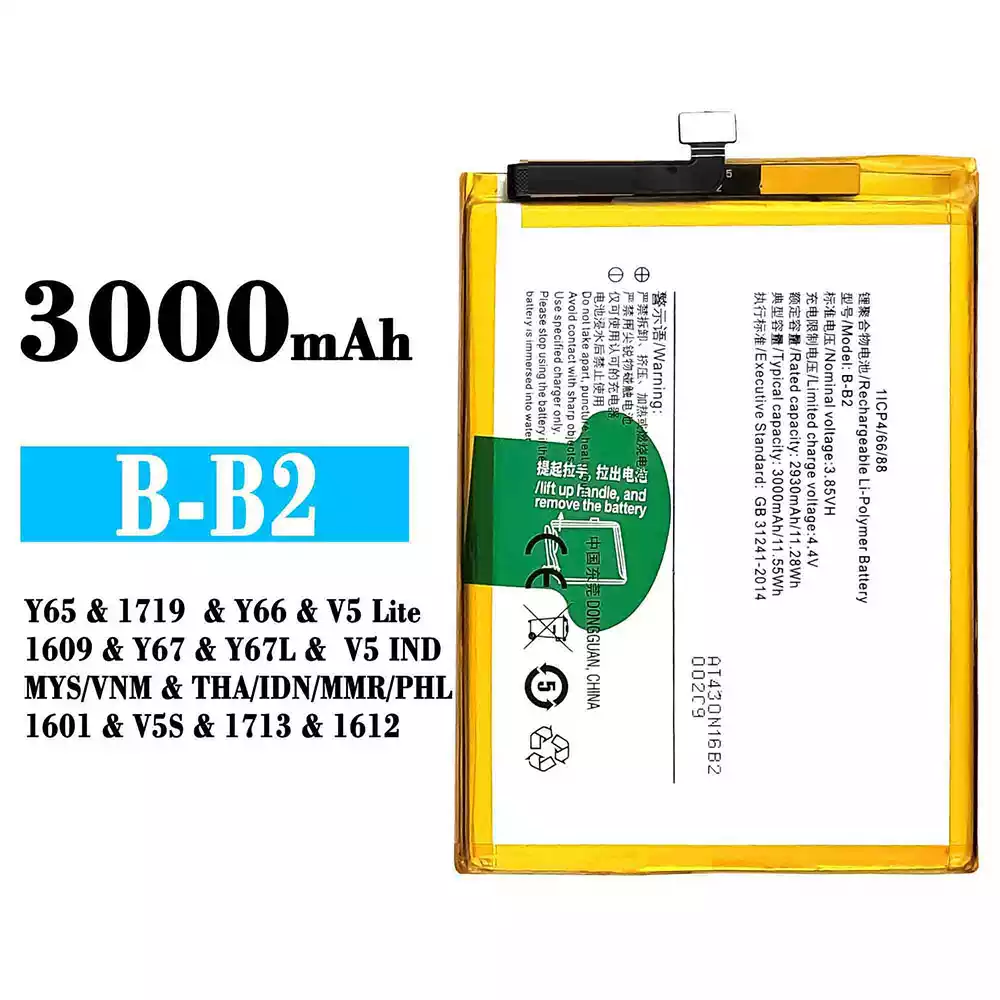 Battery model B-B2 for VIVO Y65 / 1719 / Y66 / V5 Lite / 1609 / Y67 / Y67L / V5 IND MYS VNM / THA IDN MMR PHL 1601 / V5S / 1713 / 1612