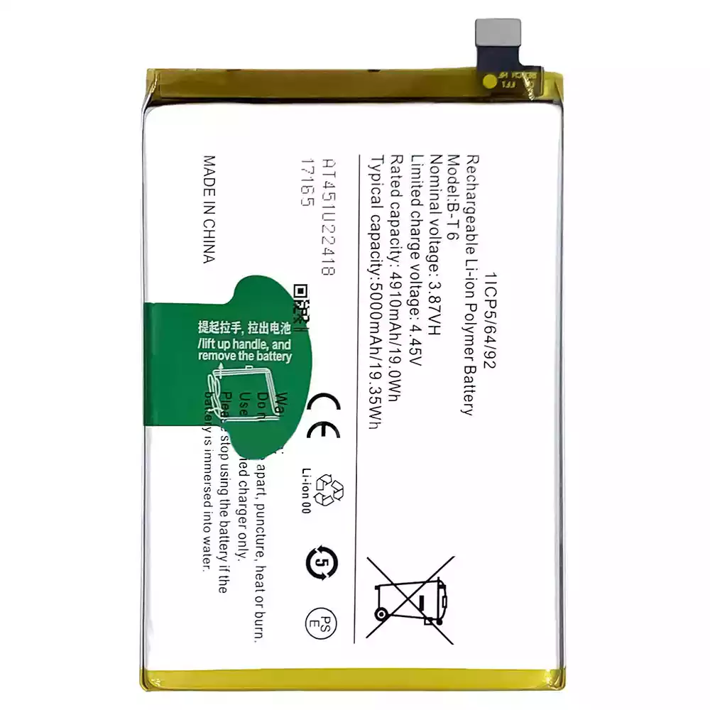 Battery model B-T6 for VIVO iQOO Z6 5G/T1 5G/Y55 5G/V2141/V2157