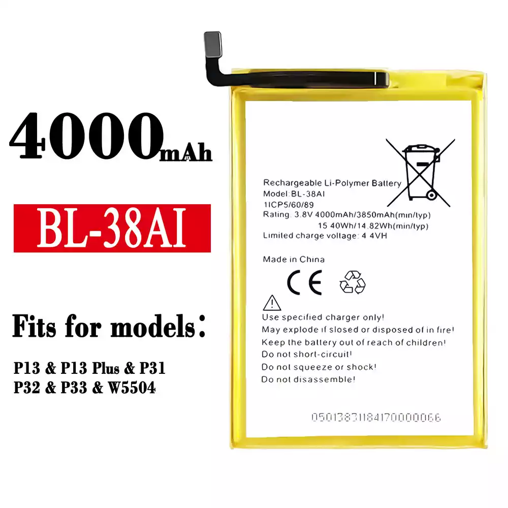 Battery model BL-38AI for Tecno P13 / P13 Plus / P31 / P32 / P33 / W5504