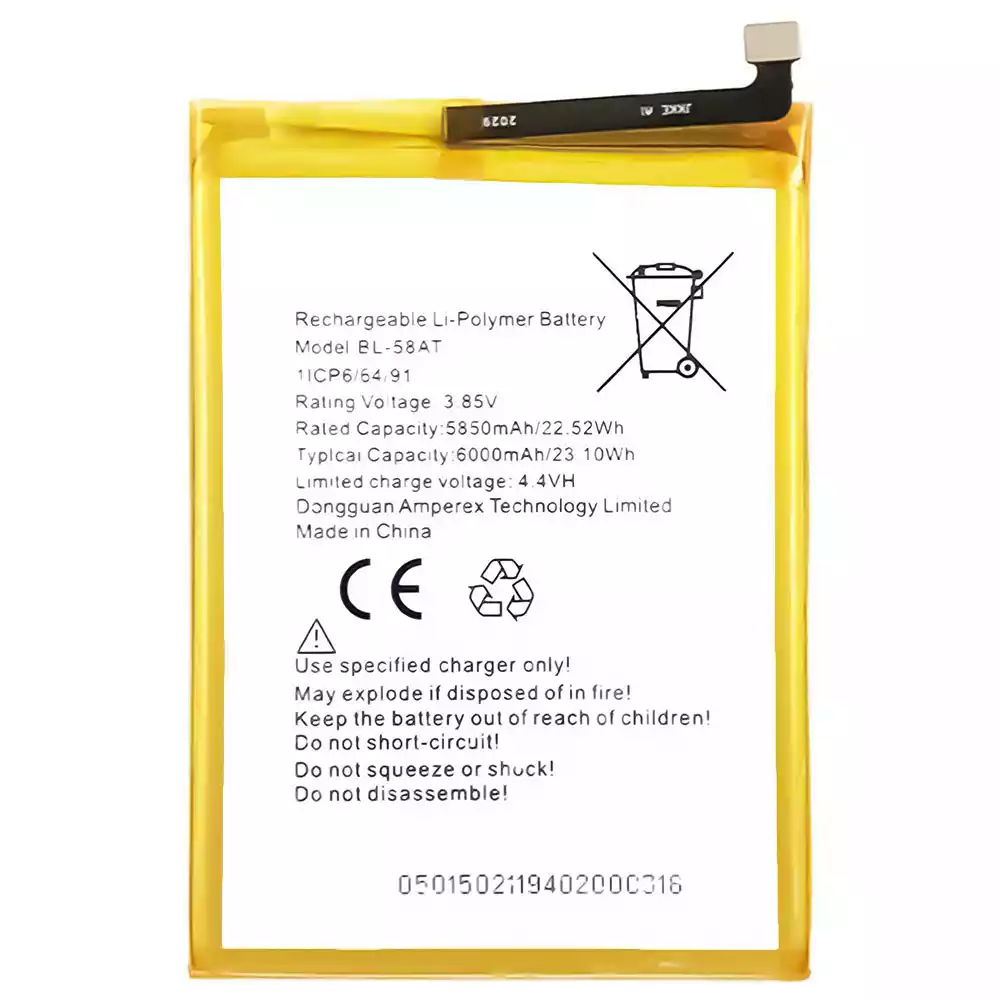 Battery model BL-58AT for Tecno Pouvoir 3 Plus / LB8 / LB8a
