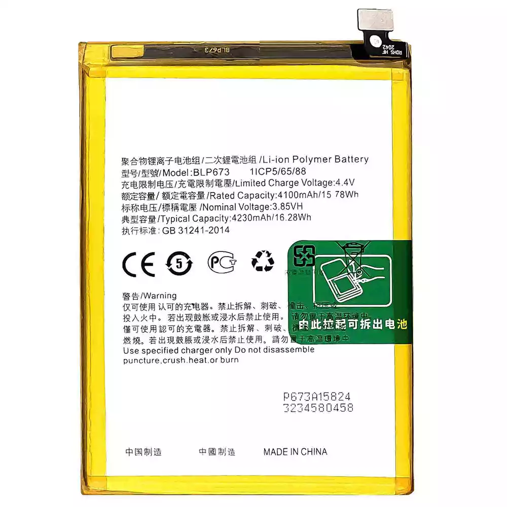 Battery model BLP673 for OPPO A5 / AX5 / A7 / AX7 / A5S / AX5S / CPH1909 / Realme C1 2018 / A1603 / Realme C1 2019 / RMX1811 / A12 / A12E / A12S / A12 2020 / A31 2020 / Realme 2 / RMX1805 / RMX1809
