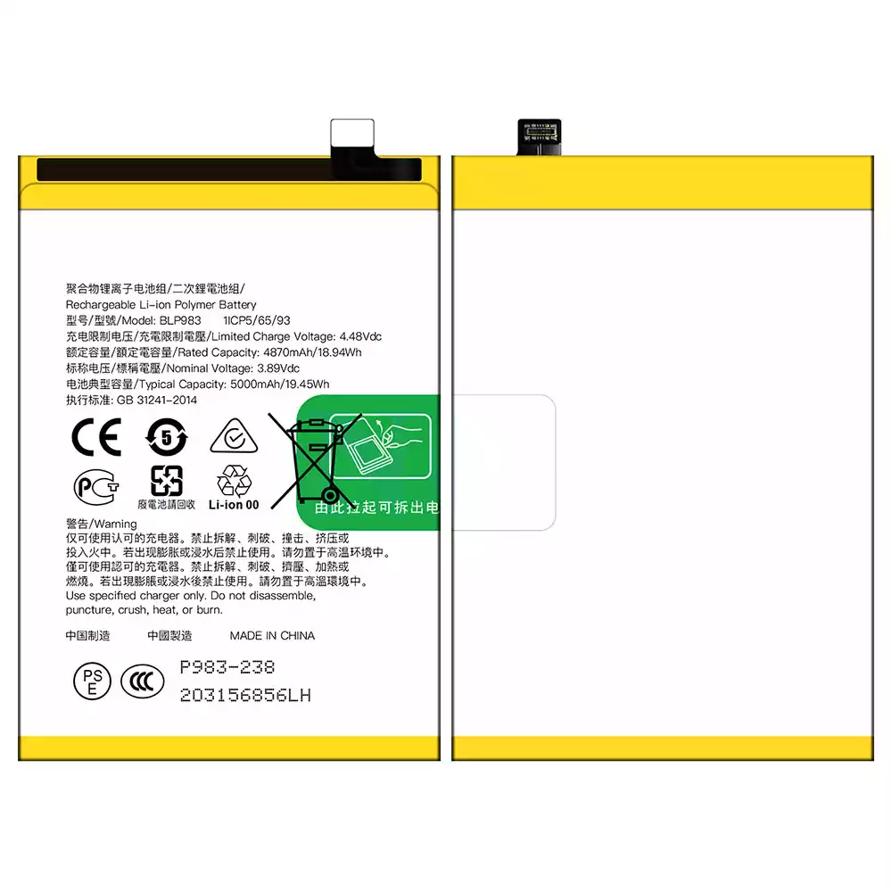 Battery model BLP983 for OPPO Reno 10 Pro/ Reno 10 Pro 5G