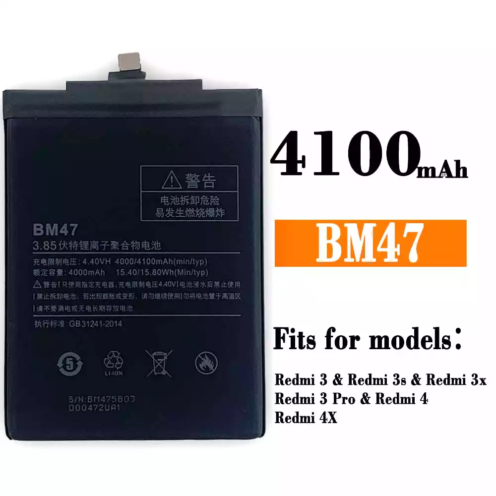 Genuine cell phone battery BM47 for Xiaomi Redmi 3 / Redmi 3s / Redmi 3x / Redmi 3 Pro / Redmi 4 / Redmi 4X