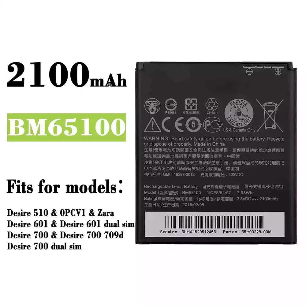Battery model BM65100 for HTC Desire 510 / Desire 601 / Desire 700 dual sim / 0PCV1 / zara / Desire 601 dual sim / Desire 700 709d / Desire 700