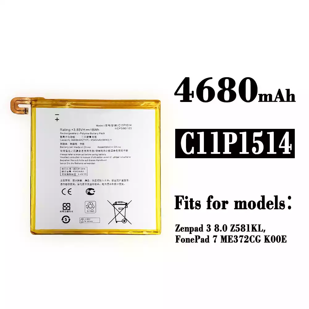 Battery model C11P1514 for Asus Zenpad 3 8.0 Z581KL / FonePad 7 ME372CG K00E