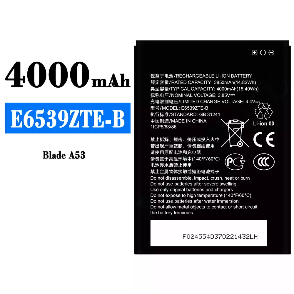 Battery model E6539ZTE-B for ZTE Blade A53