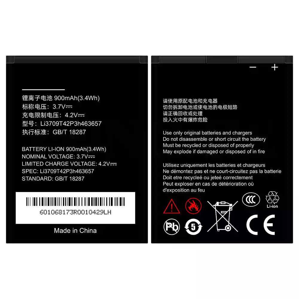 Battery model Li3709T42P3h463657 for ZTE N281